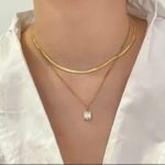 Upgrade your everyday elegance with this Anti-Tarnish Square Crystal Layered Gold Necklace, designed for modern, effortless styling. Featuring a sleek double-layer design with a smooth gold herringbone chain and a delicate square-cut crystal pendant, this necklace delivers a refined and timeless look.