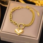 The highlight of this bracelet is its beautifully polished heart-shaped pendant, suspended from a circular connector that adds movement and dimension. The heart symbolizes love, confidence, and self-expression, making this piece more than just an accessory—it’s a reflection of your personality and style.