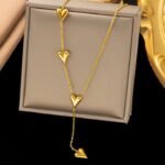 Celebrate love, elegance, and modern femininity with the JUALIVA Cascading Hearts Gold Drop Necklace. Designed with a graceful vertical silhouette, this necklace features multiple polished heart charms delicately placed along a fine gold-tone chain, creating a flowing drop effect that instantly draws attention. Each heart represents love, warmth, and emotional connection, making this piece both stylish and meaningful.