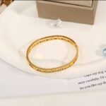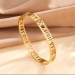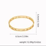 Crafted from premium titanium stainless steel, this bangle offers exceptional durability while maintaining a lightweight, comfortable feel on the wrist. The rich gold-tone finish adds a luxurious touch, making it suitable for both everyday wear and special occasions. Its smooth inner surface ensures a comfortable fit, while the structured outer design gives it a bold yet elegant presence.