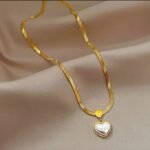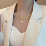 Paired with a smooth snake-style gold chain, the necklace sits flat and comfortably against the skin, offering a sleek and luxurious drape along the neckline. The heart pendant gently moves with you, catching the light from every angle and adding a soft sparkle to both casual and elegant outfits. Whether worn with blazers, dresses, or everyday tops, this piece elevates your look with understated sophistication.